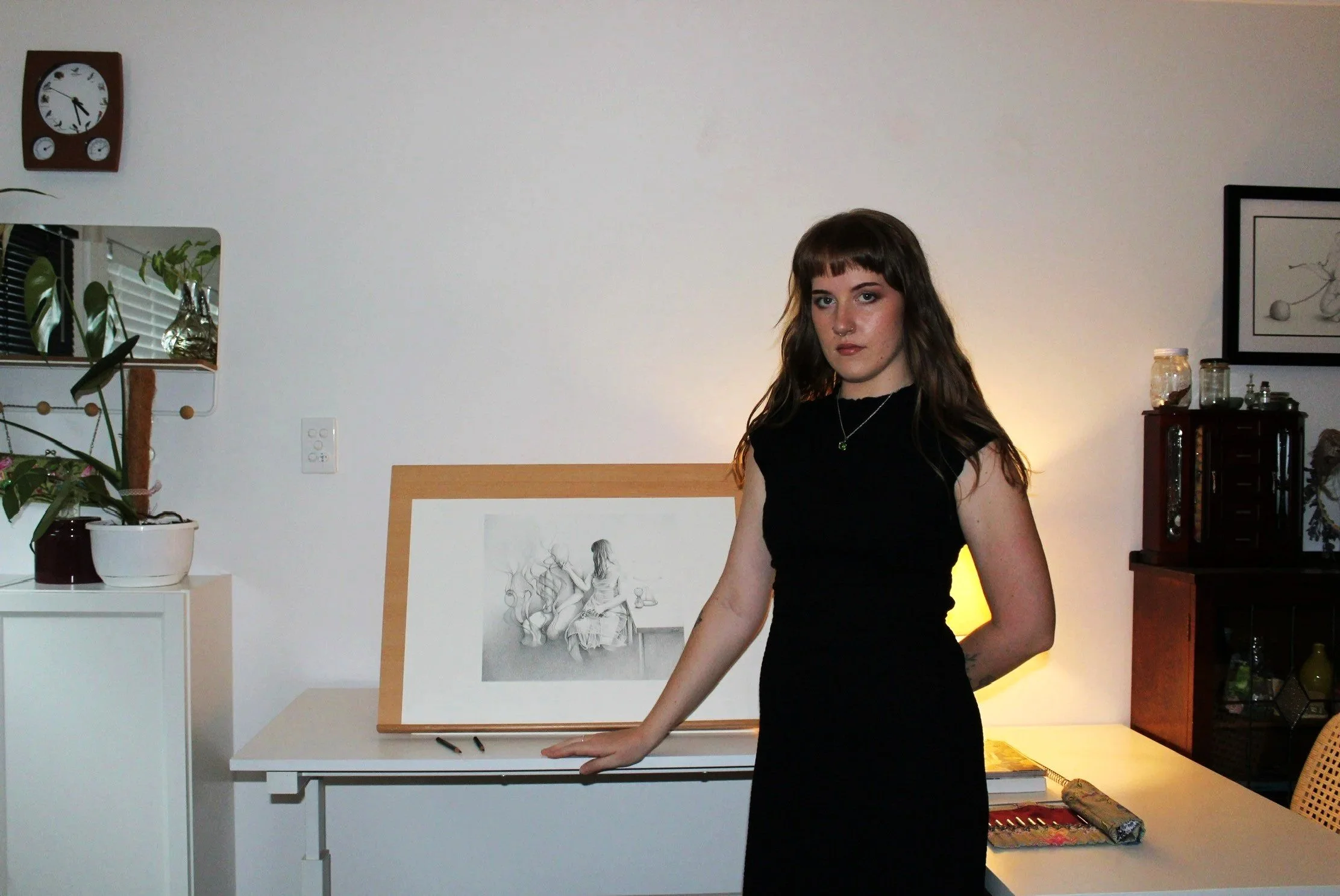 Shonnie is a Brisbane/Meanjin-based artist whose drawings give form to intense emotional states. Her practice explores themes of shame, guilt, turmoil and frustration, translating her inner world into figurative works that are raw, vulnerable and cathartic.
